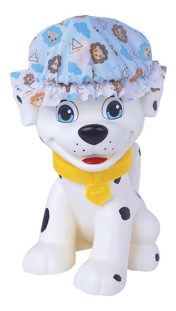 Ele é um cachorrinho muito lindo que é acompanhada de certidão de adoção e muitos acessórios como toalha de banho, patinho de espuma e touca de banho.
